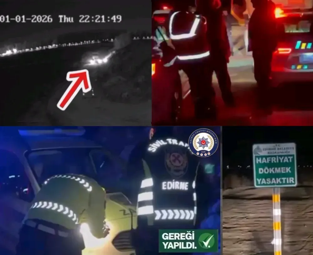 Edirne’de çevreyi kirleten ve trafik güvenliğini tehlikeye atan ihlallere karşı kararlı mücadele sürüyor. Edirne İl Emniyet Müdürlüğü tarafından yürütülen kamera izleme çalışmaları kapsamında, Karaağaç Mahallesi Yüksek Hızlı Tren Köprüsü yakınlarında yol kenarına hafriyat döküldüğü tespit edildi.